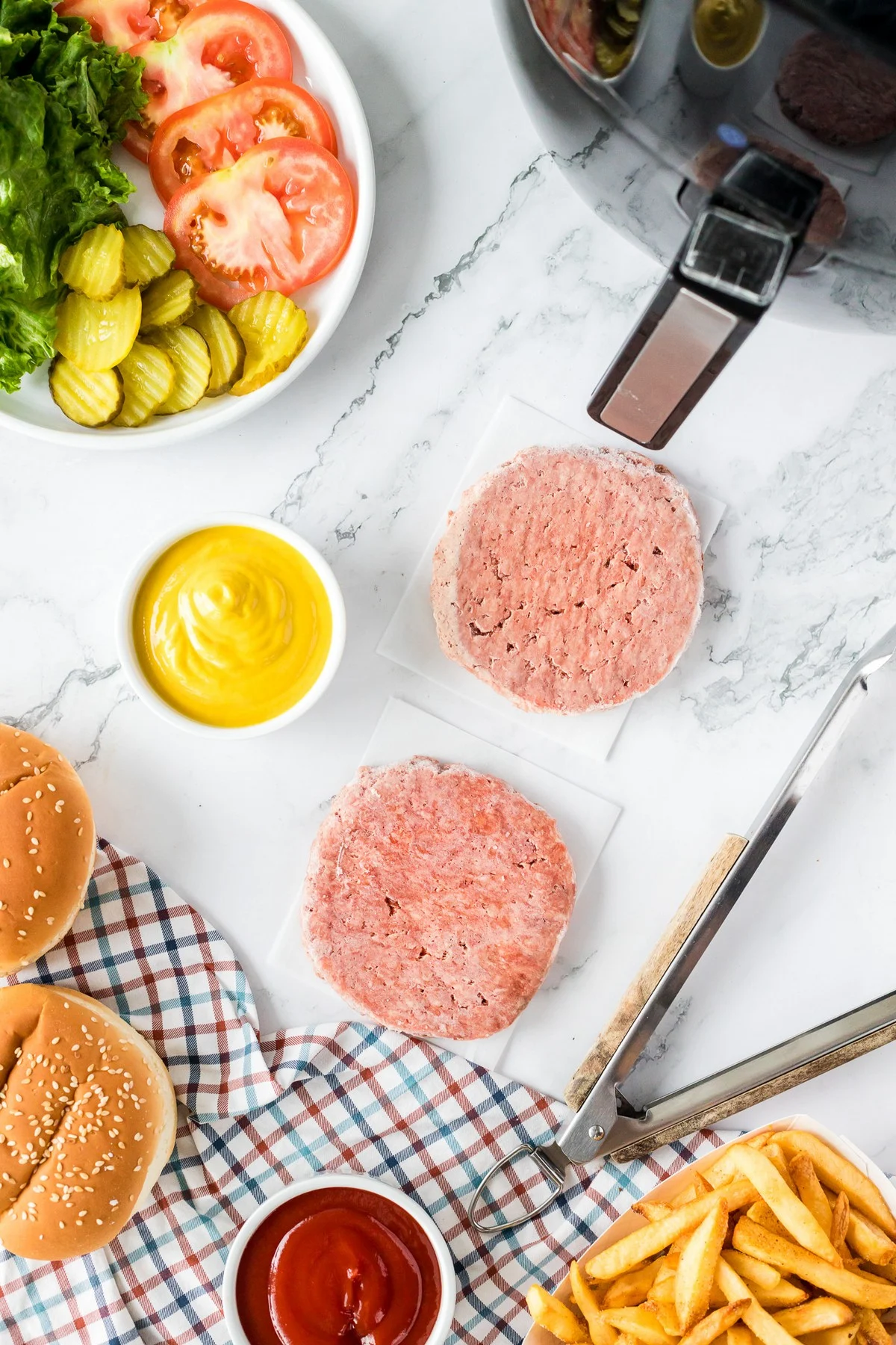 - It’s easy. There is zero prep work when you use premade burger patties. All you have to do is pull them out of the freezer, add seasoning, and air fry.