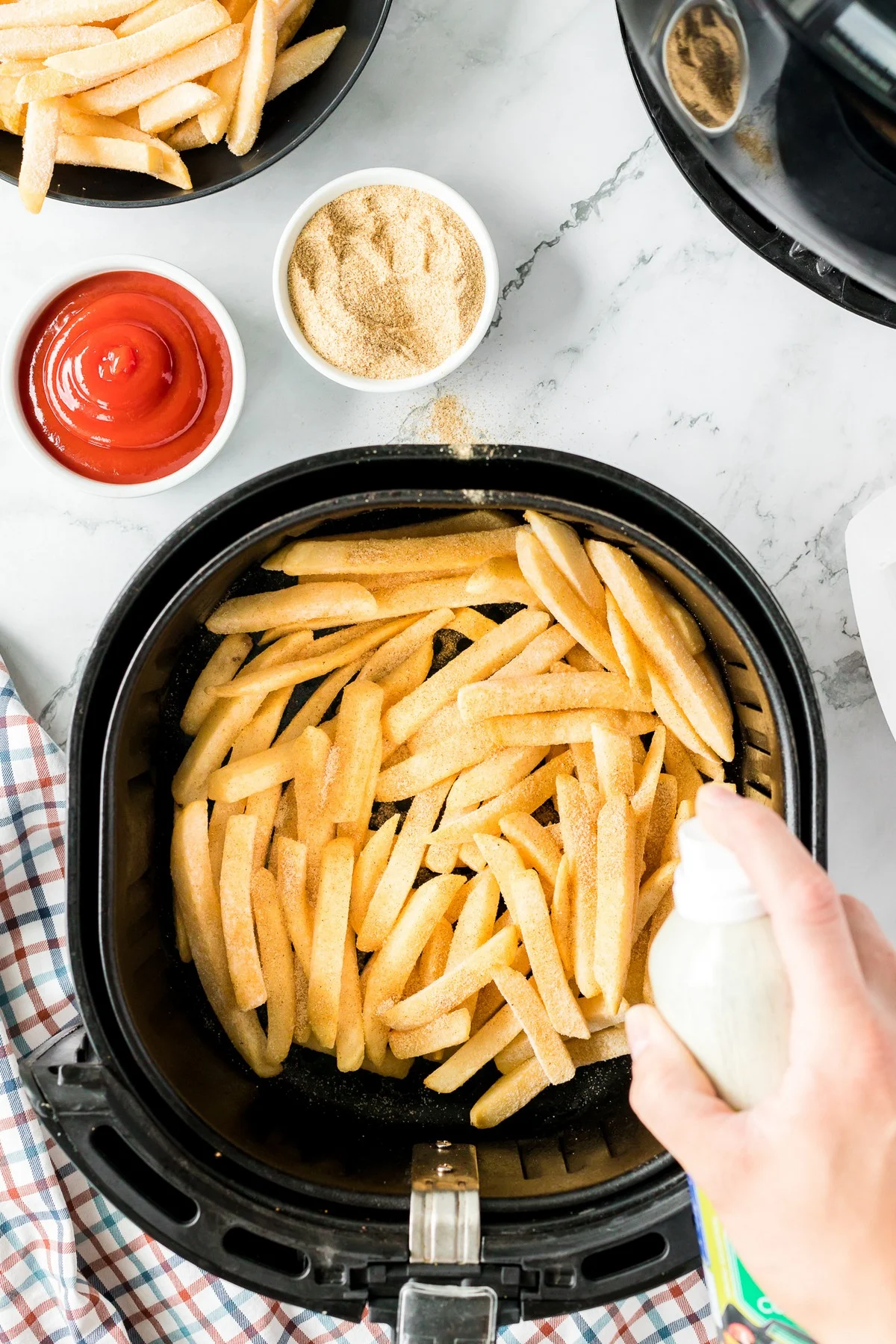 - Cooking Spray: Light cooking spray is all you need to crisp up these french fries.