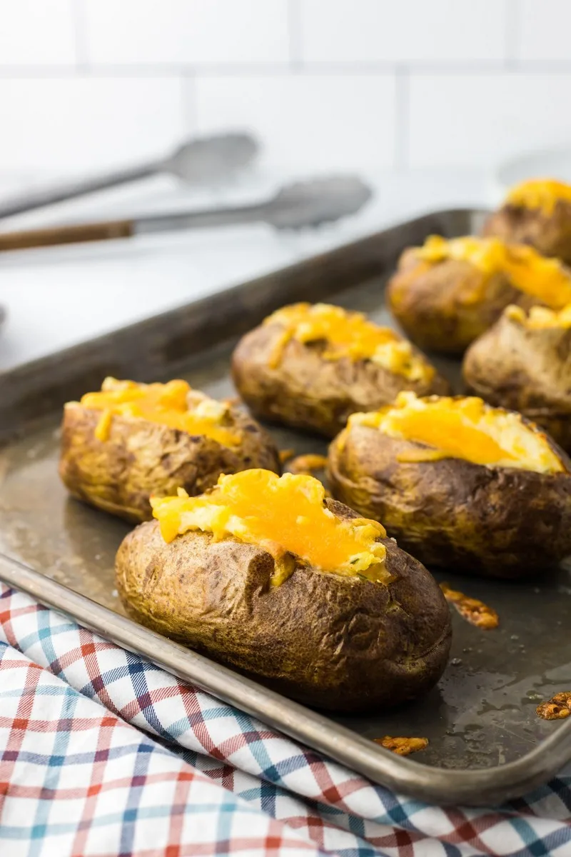 To make this recipe ahead of time, bake the potatoes, restuff them, and then place them in an airtight container in the fridge for up to 3 days. When you are ready to serve, place them on a baking sheet or casserole dish and bake for 20 minutes using the instructions in the recipe card below.