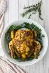 To get the best and crispiest chicken skin, lots of butter is required. By smearing the butter underneath the skin of the chicken, you will get beautifully browned and crispy outer skin. I can’t even describe the amount of flavor this gives the entire recipe.