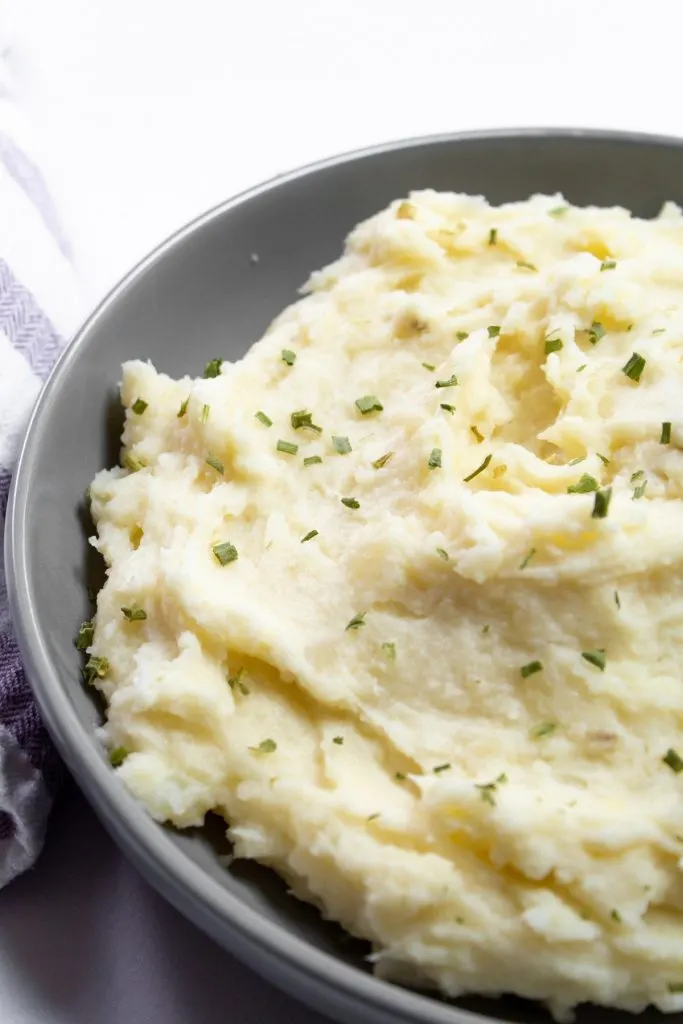- Don’t use a mixer: It’s tempting to use a mixer to get the job done faster! However, you should use a potato masher or potato ricer for the creamiest results.